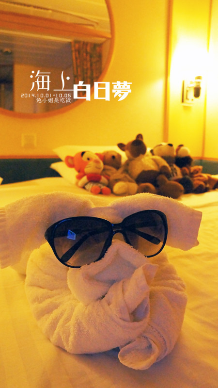 回到房间后,毛巾小兔子来陪我们渡过邮轮上的最后一夜。