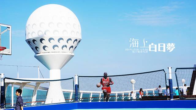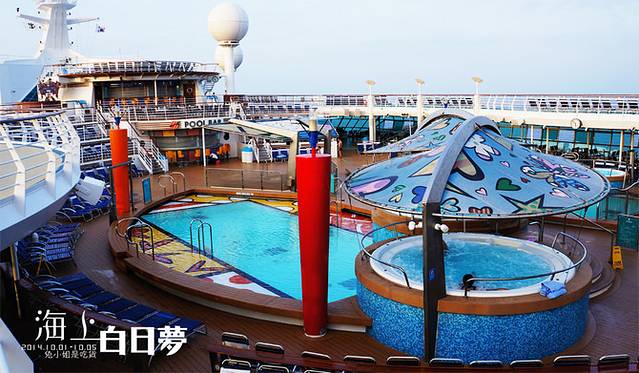 甲板十分的大,除了泳池和一个小舞台外,还包括了运动设施。