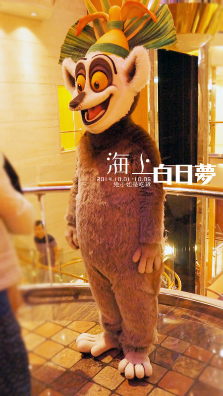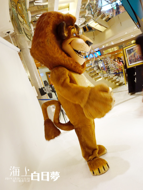 本来是看到晚上在3F画廊有跟马达加斯加的艾利克斯合照的活动,没想到呢必须让船上的人员来拍摄,且不能单独拍艾利克斯。