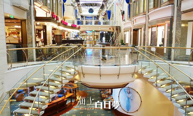 皇家大道是船上最热闹的地方,有大大小小的商店、各种促销活动的花车、以及各种演出、合影活动。