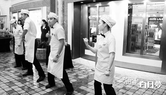 七点半的时候,很多餐厅员工会站在主餐厅的大楼梯上给大家唱一首月亮代表我的心~