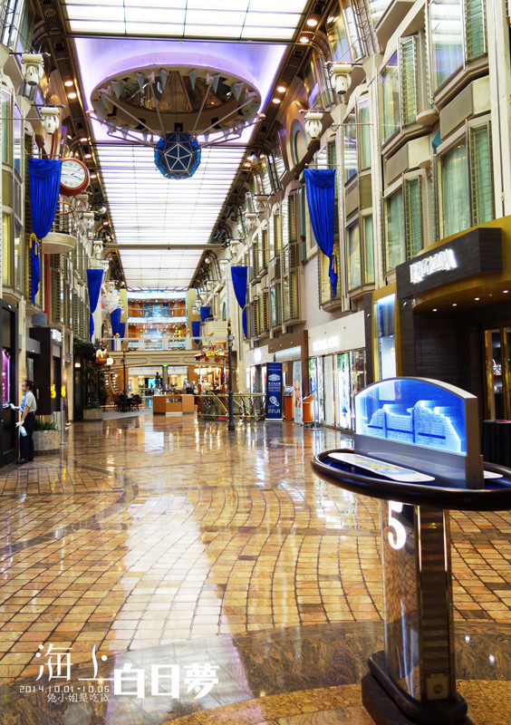 在皇家大道的一头,就是船上的服务中心。我们之间有一张房卡失效,便是来这边更换。