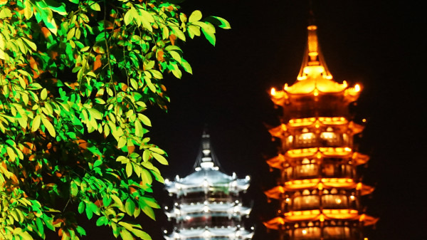 这一天的最后一项行程就是正阳步行街+日月双塔!