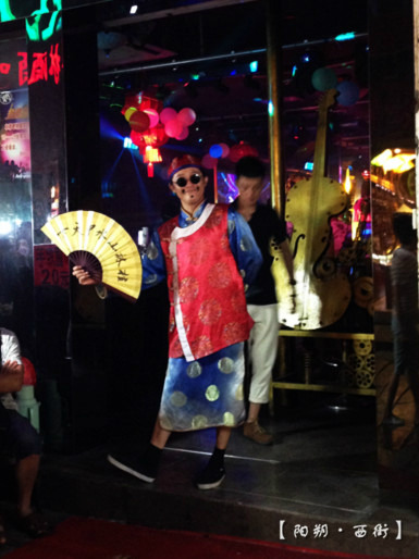 我在阳朔住了3晚,每晚都见这人在门口各种太空步~大热天的捂那么多~也不容易呀~