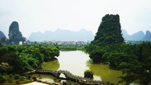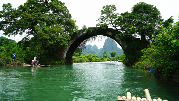 【富里桥】距桂林市56公里,阳朔县城12公里处,处于遇龙河上游500米,石结构单拱,长30米,宽5米,高10米,筑于明代,距今约500余年历史,造型美观,水中倒影恰似一满月。