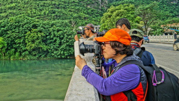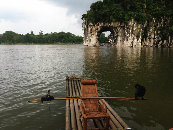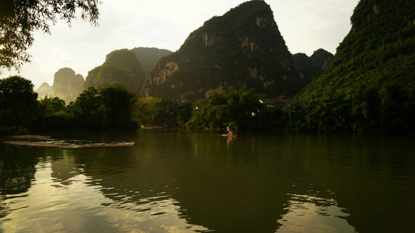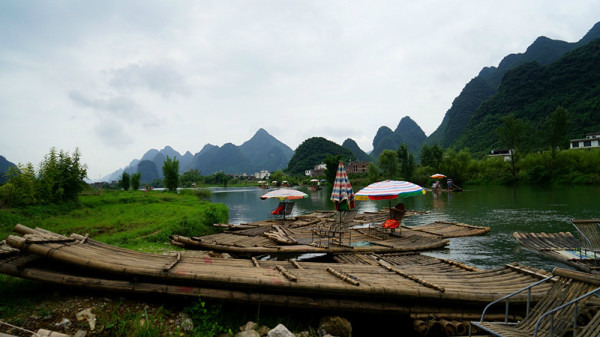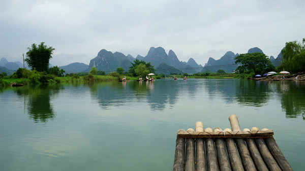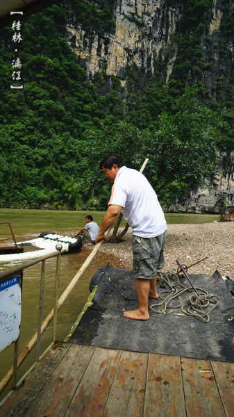 漓江漂流的筏子是电动的,速度稍微快些,我们到的时候刚好10点半,据说10点半以后就封航了,正巧赶上了最后一班,也正因如此,同行的船只很少,可以让我们随心所欲的照相而不必担心画面收进不必要的人头……