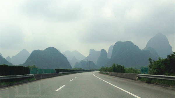 灰机8点半到达桂林两江机场,包车的司机李师傅已经恭候在外。直接从机场走高速杀到阳朔。说真的,我觉着这一路风景对于初到桂林的我来说也是一种欣喜。因此推荐包车前往桂林的亲们一定要走高速,比国道快半小时,多20元高速费。国道是看不到风景的哦。