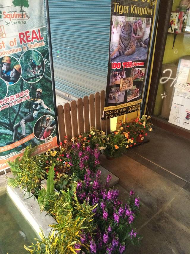 坐了一晚的车到达清迈,然后坐双条去酒店,到了酒店check in的时候,前台说没有我们的信息,我们有点小崩溃,然后请他们的老板出来才搞定。因为我们8点到的还不可以入住,所以我们换装后寄存行李就出去逛了