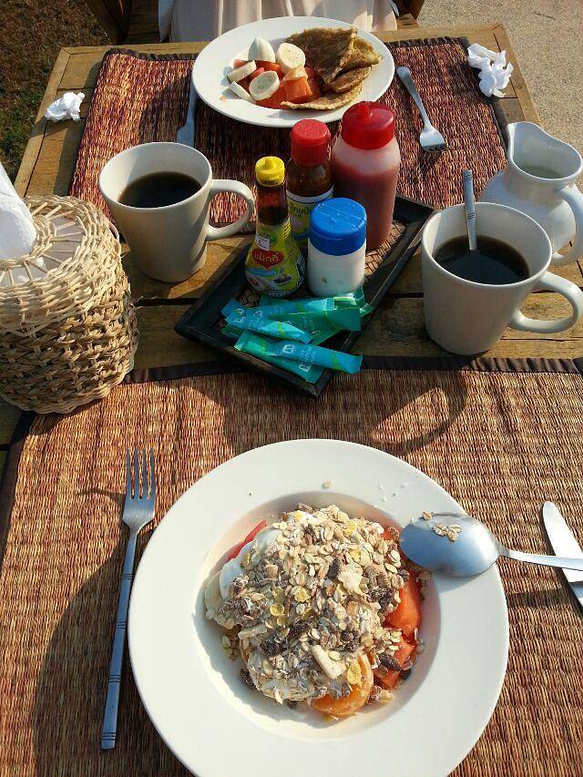 乱七八糟的早饭,然后还跟老板换了5000的泰铢,因为我们现金不够,所以汇率不好也要换,1:5