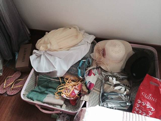 女生都是爱漂亮的,结果每人都是一个大行李箱,我的28寸,朋友的26寸,带了长裙,帽子,太阳镜,必备的药,凉鞋,人字拖......