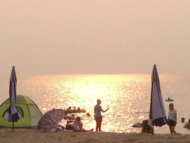 今天会在海边玩耍。。差不多十点多。。人越来越多了。。