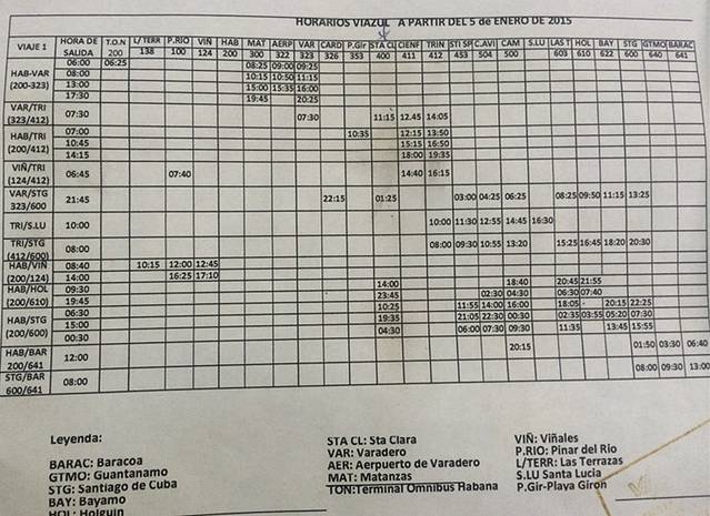 古巴的国内交通还算发达,而且路上车也不多,如果同行朋友多的话可以考虑租车,路况不错,VIAZUL就是车站,中国宇通生产的大巴车可以走完古巴大小著名城市。外国人和本地人的大巴车不一样,相对本地人消费价格偏高相对中国来讲就还好,反正整个古巴只要外国人吃的用的住的都偏高,哈瓦那古城到哈瓦那的车站非常不便,市区也没有代购车票的地方,要亲自去车站买,我是提前一天特意去买票,车站一般都有寄存行李的地方,不同的城市寄存费不同,有的是私下要的,在巴拉德罗我给过最贵的5比索寄存费。以下是2015年发往各个城市的列车时刻表。市区内的交通有公交车,人力车,三个轮子的黄色的小车,还有比较老的老爷车出租车,还有一个敞篷的看起来很新的出租车,最贵的就是那种敞篷的看起来崭新的出租车。