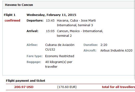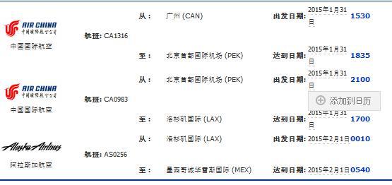 在天巡上提前两个月定好往返机票http://www.tianxun.com/ 广州-北京-洛杉矶-墨西哥-古巴(哈瓦那)-墨西哥坎昆-墨西哥城-洛杉矶-北京-广州。广州到墨西哥城往返属于联程机票。机票费用将近12000.(加上候机时间,单程将近43小时....)不要问我为什么没有直飞?因为这样便宜啊...