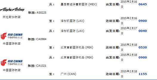 2月11号飞往墨西哥城