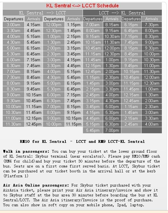 我们又再次非常幸运的赶上了2:45从LCCT去kl sentral的巴士。价格9rm。