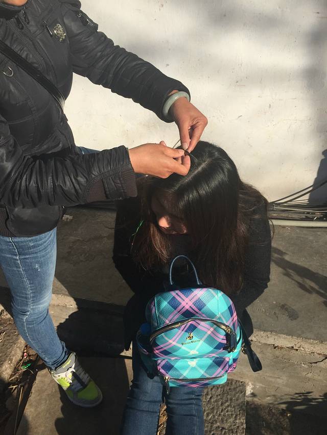 当地随处可看心灵手巧的阿姨推荐给我们游客变辫子(10元6根)