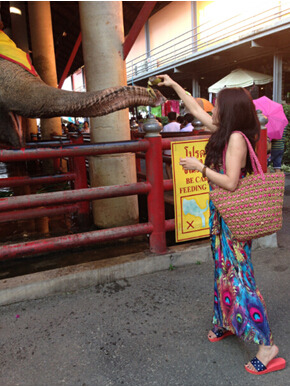 花40泰铢买了香蕉喂大象,还可以拍照,爽啊!不过大象的鼻水好恐怖,要闪,不然中蕉!哈。
