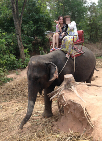 在等大象表演期间,可以自费去跟大象拍照,100铢不用小费,大象会弄3个post举起你,就看你胆量了。我是挺怕的,每张照片都拍得面目全非,因为大象的毛刺刺的