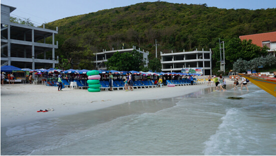 岸上有沙滩椅,都是收费的,100铢坐一小时。