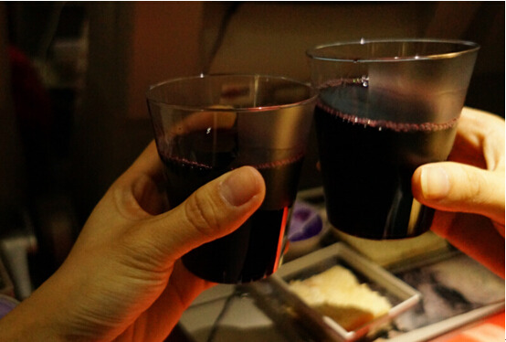 派饮料的时候,我们点了红酒,为了能睡好点。