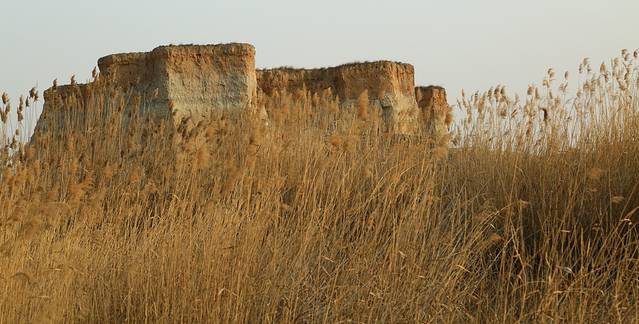 土林没有围墙,仅在靠近景点的道路上扎了一道墙,设门收费,周边农田四通八达都可以进入。土林所在地属于盐碱地,30公分厚的种植土下就是白色盐碱土,所以下到大坑的底部,以为是进了石灰池。这地方适合拍照,有断垣残壁的土林和枯黄的芦苇,喜欢沧桑题材的摄影人可以钻进去呆一天,在早晨或傍晚太阳西斜的时候景色最好。如果你只是喜欢看热闹的人,这地方也可不去。