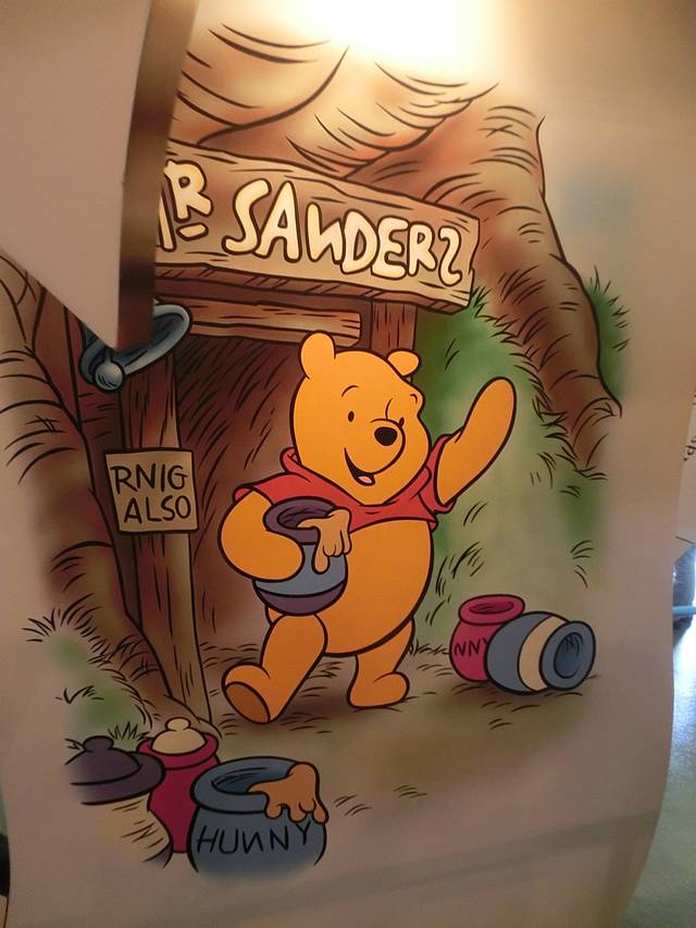 完全相当于VIP啊,排队的通道墙壁上都是维尼的绘图,很有带入感。