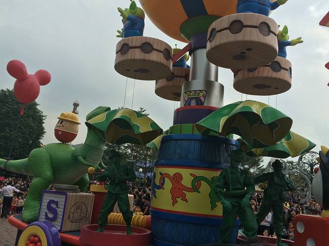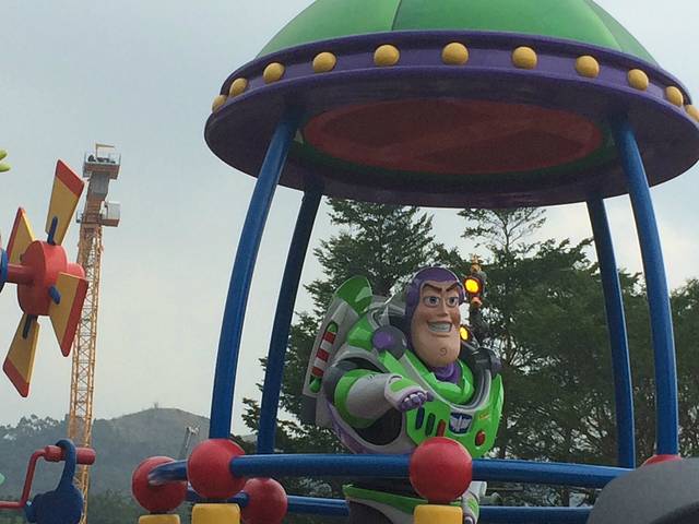 迪士尼里面的项目大部分都只是适合小朋友玩,但个人觉得反斗奇兵大本营里面的项目很适合年轻人,比较刺激。反斗奇兵大本营是以电影《反斗奇兵3》为骨干,主题园区内摆放着各式超巨型玩具,游客在园区里,仿若小矮人一般。这里有3个机动游戏:一个是宾客坐上如“腊肠狗”的设施,经历一段颠簸旅程;另一设施是一台冲天遥控车,类似海盗船,沿着U形轨道快速来回;还有一个是“跳伞”训练旅程,从25米高台向下急坠。