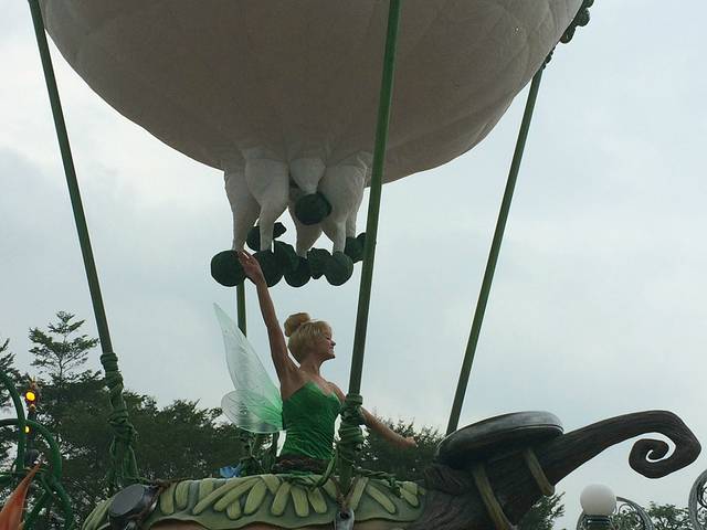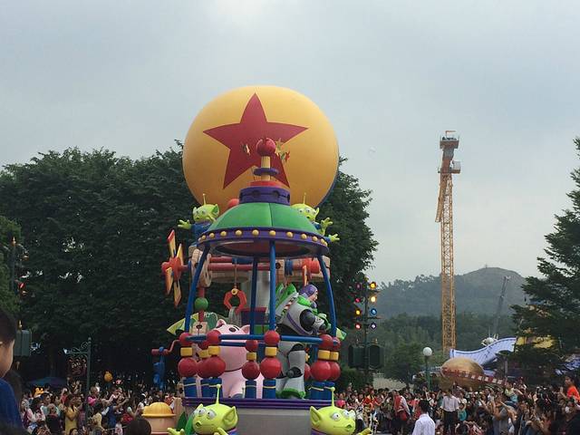 【花车巡游】从10月份开始,香港迪士尼的花车巡游每天有两场。下午场是3点半(以当天节目时刻表为准,有时时间不一样),夜间场是光影汇,配合夜晚的气氛,花车都是发光的,工作人员说比下午的花车巡游更好看。但是我们去的那天,因为暴雨,夜间巡游取消了。花车巡游在睡公主城堡前的回旋花园,最好提前30~45分钟找好座位。