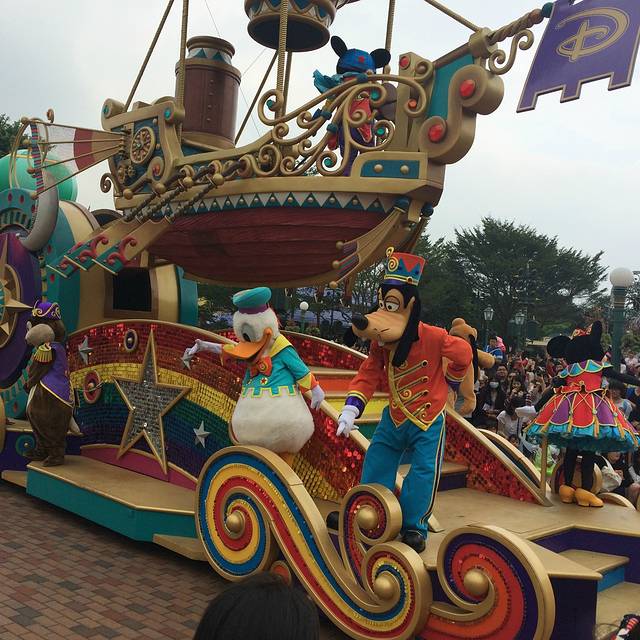 迪士尼早上10点开园,怕人多的话最好早点去。进去前先在大门旁边拿地图和节目时刻表,看看当天的花车巡游还有烟火表演什么的是几点开始,好提前做好准备。