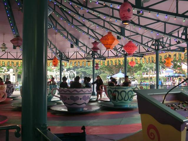 这个项目欢乐谷里面也有,除了工作人员控制整体转动外,自己坐在杯子里还可以转动转盘,转的越快,晃动越快,反正转完我晕了。