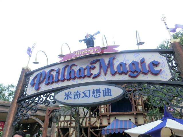 看吧,入口处就是FastPass派发点,上面有写着让你哪个时间段回来。所以拿了FP,就可以先去玩其他项目。我们准备去看米奇幻想曲。