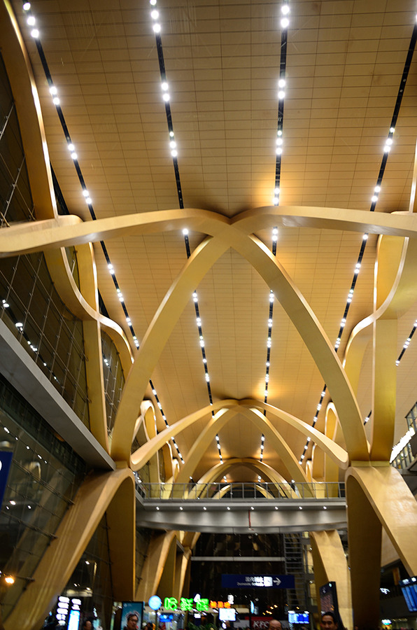 昆明机场装修的很有特点,我最喜欢这里房顶的设计,蜿蜒曲折。