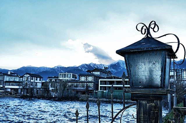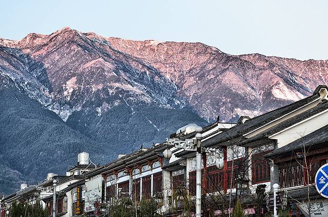 苍山前不久刚下了场雪,到时候还没有完全的融化,在加上日出日落又比较晚,所以到的时候赶上日出照到苍山。