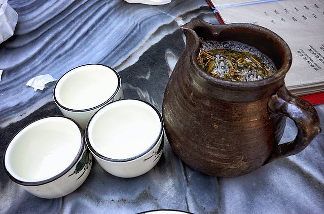 三人茶。梅子井来喝酒,在上菜之前,由于菜上的比较慢,可以先喝一点当地的茶。