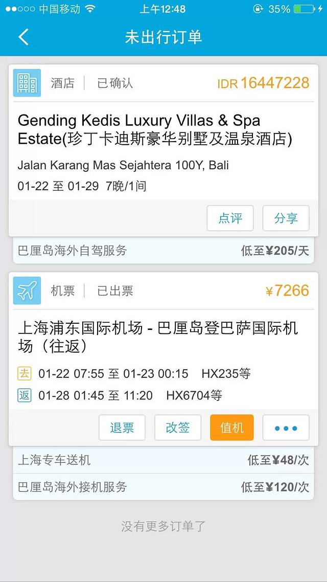 去巴厘岛的航空线路非常多,建议去之前在去哪儿上上查询一下各个线路的具体价格,进行比较后在预订具体航班,这是我定的。四点就起来了啊