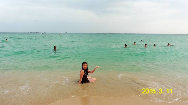 下楼即到海边,虽说大东海的海水可能不及亚龙湾海棠湾的,但我已经很满足了,住在这就是一个方便,随时可以投入它的怀抱……哈哈