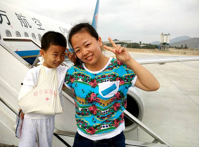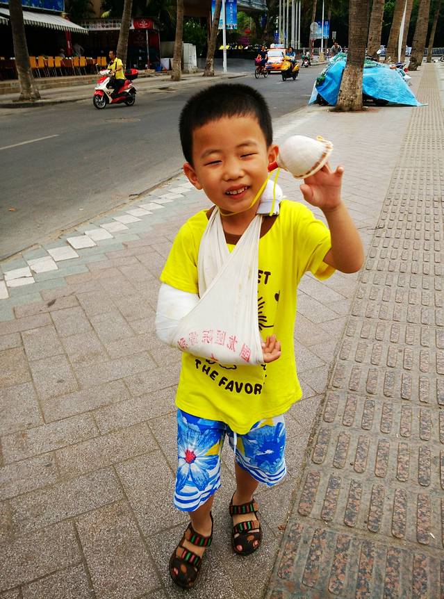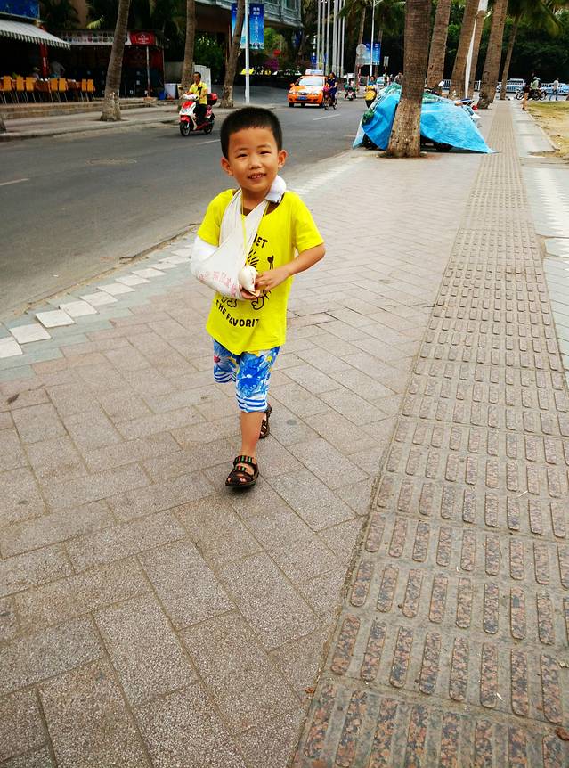 可怜的小家伙,临行前一周,胳膊骨折受伤了,打着石膏就上路了,嘿嘿,可惜丝毫没有影响到他的心情,依旧是超High的~~~