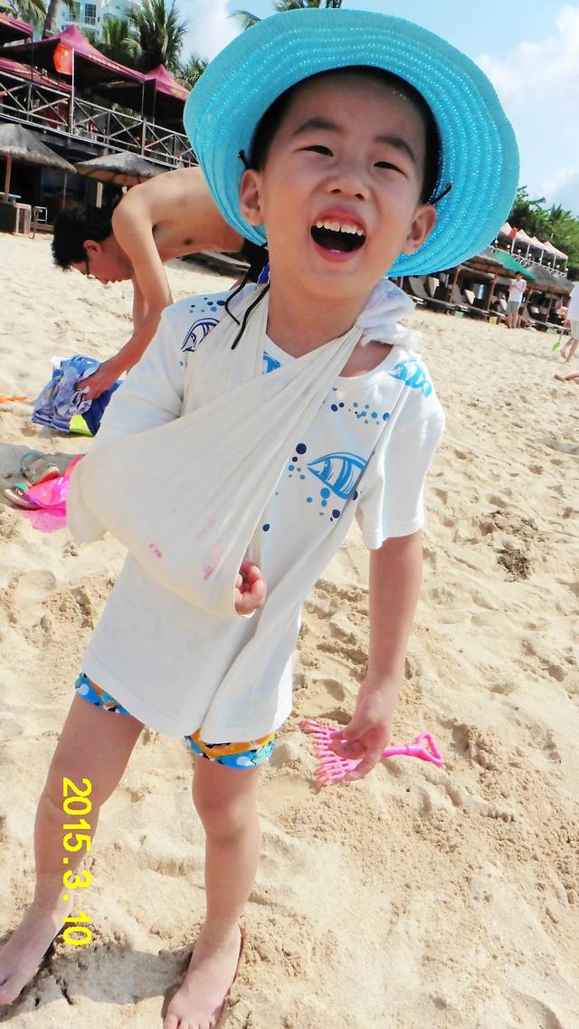 虽然打着绷带,情绪也丝毫不受影响哦,唯一遗憾的就是不能下水喽~~