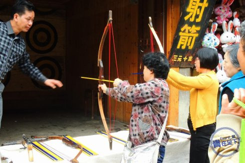 大妈在射箭!经过几分钟非常认真瞄准之后,依然射到地上脱靶!