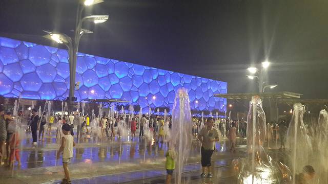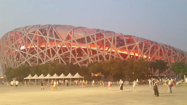 从天安门广场逛一会后,天色已经渐暗,于是,打算去鸟巢、水立方看夜景。回到住处的时候已经九点多了,还好住处离哪里都不是很远,而且交通很方便。