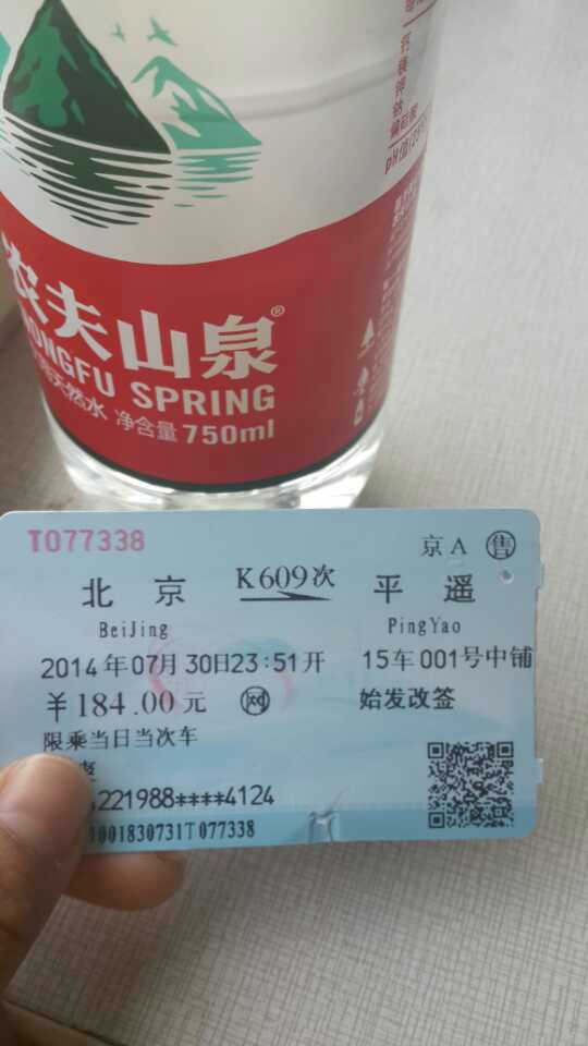 北京---平遥 K609中卧 23:55--次09:36 184元/张