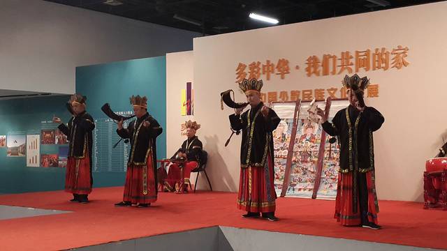 博物馆里,一场少数民族表演。