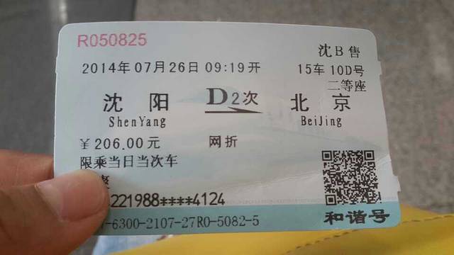 沈阳---北京 D2 09:19--14:06 206元/张