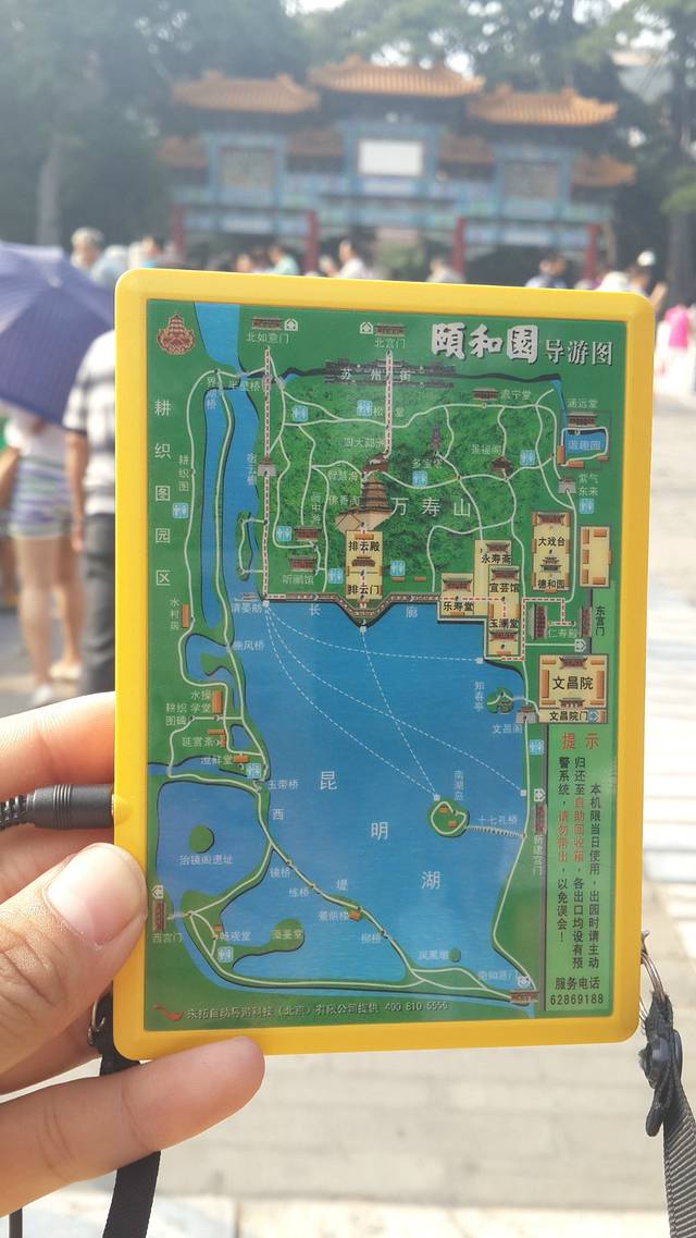 颐和园门口租的电子导游语音讲解器,电子感应,每到一处,自动给你详细的介绍。