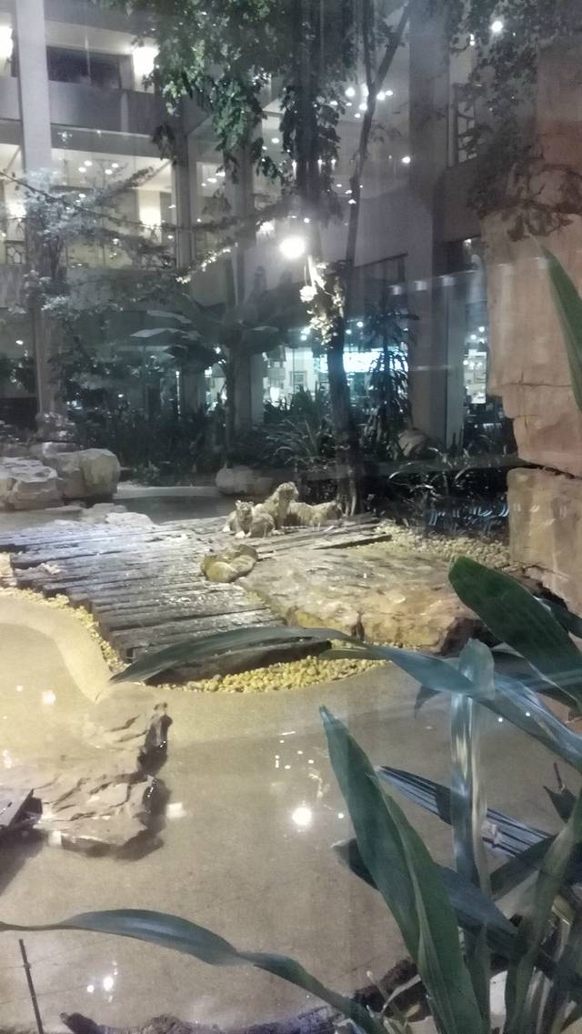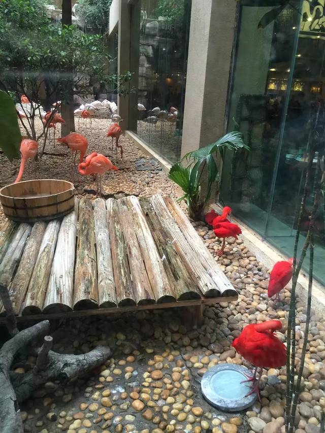 通过网站定好酒店门票后(建议比较含早餐和不含餐的价格,一家三口在白虎餐厅的早餐费为475元,含早餐要搞清楚是含双早还是三早,因为小孩单独要101元),广州南站站内有个长隆度假区的宣传展台,凭订房的凭证在此候车,每隔半个小时整点发车,有免费大巴载客人前往度假区,大概15-20分钟车程,到达入住后,可以在酒店里逛逛,酒店有自营商店,同仁堂药店,服装店含童装,旅游纪念品商店,各类饭店,无超市,酒店有两个大天井,一个天井养白虎,一个天井养红鹤,都能观看。我们是周五晚上住长隆,在酒店鳄鱼快递有个儿童游乐场,小朋友在那玩了很久,我们在旁边看白虎,酒店说是目前中国最好的亲子度假酒店,我觉得对得起这个称号,确实做的好,个人认为只要带毛巾去,洗漱用品都是设计的动物主题,外面绝对没有,小朋友的拖鞋,浴袍,小牙刷都很贴心,周六在白虎餐厅吃饭早餐后(餐厅有森林剧场等动物表演,里面有节目表的),可以坐靠窗的位置看白虎和红鹤,