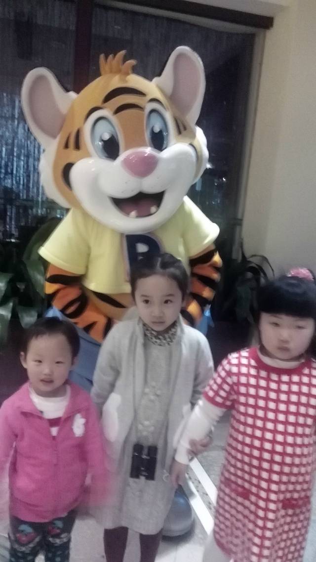 白虎餐厅为孩子们设立的森林剧场,小妞好认真