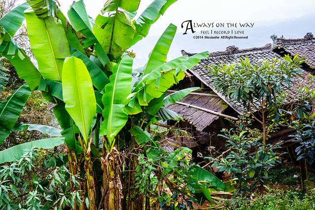 岜沙其实是建立在一个很陡峭的山坡之上,从山顶上走下来,一路会看到独属于这里的原生态生活方式,这里古老的房屋屋顶是用树皮盖成的,这里的芭蕉树又高又大,这里时时闻得到清香的气息,这里有太多太多我们不曾见到过的花花草草。