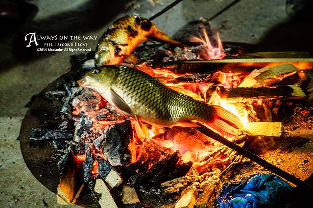电炉一开,锅里的水沸了,我们的午餐就开始了,可以说,侗族的食物,大多是把肉切块直接下锅煮,菜洗一洗也是直接扔到锅里开煮,然后捞上来撒上些盐面,或者拌上些辣椒酱就可以了,没有城市里那么多的调味,吃到的是食物的本味,或许没有品尝过的人会有些难以想象,而品尝过后的我觉得这样的味道也是蛮不错的,席间自然不会少了侗族男女们的献歌还有大主题——敬酒,女孩子大多是可以幸免,而至于男生嘛,到了这里不多喝两杯,恐怕是出不了屋子。