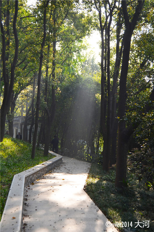 从文苑景区到竹林景区,要穿过一片竹林,上山的游人很少,在这里感觉十分清静,而不远处就是喧闹的文苑景区。