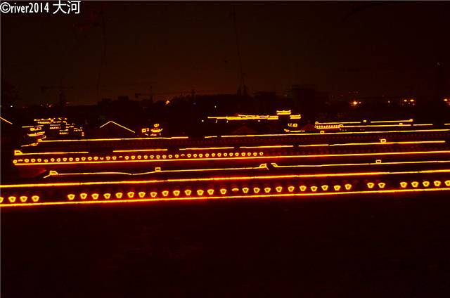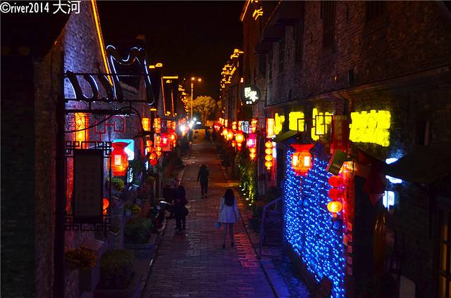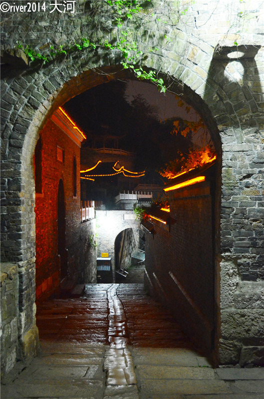 古街的灯光全部开启,每一座房子的防火墙上都设置了灯光,一直延伸到远处。